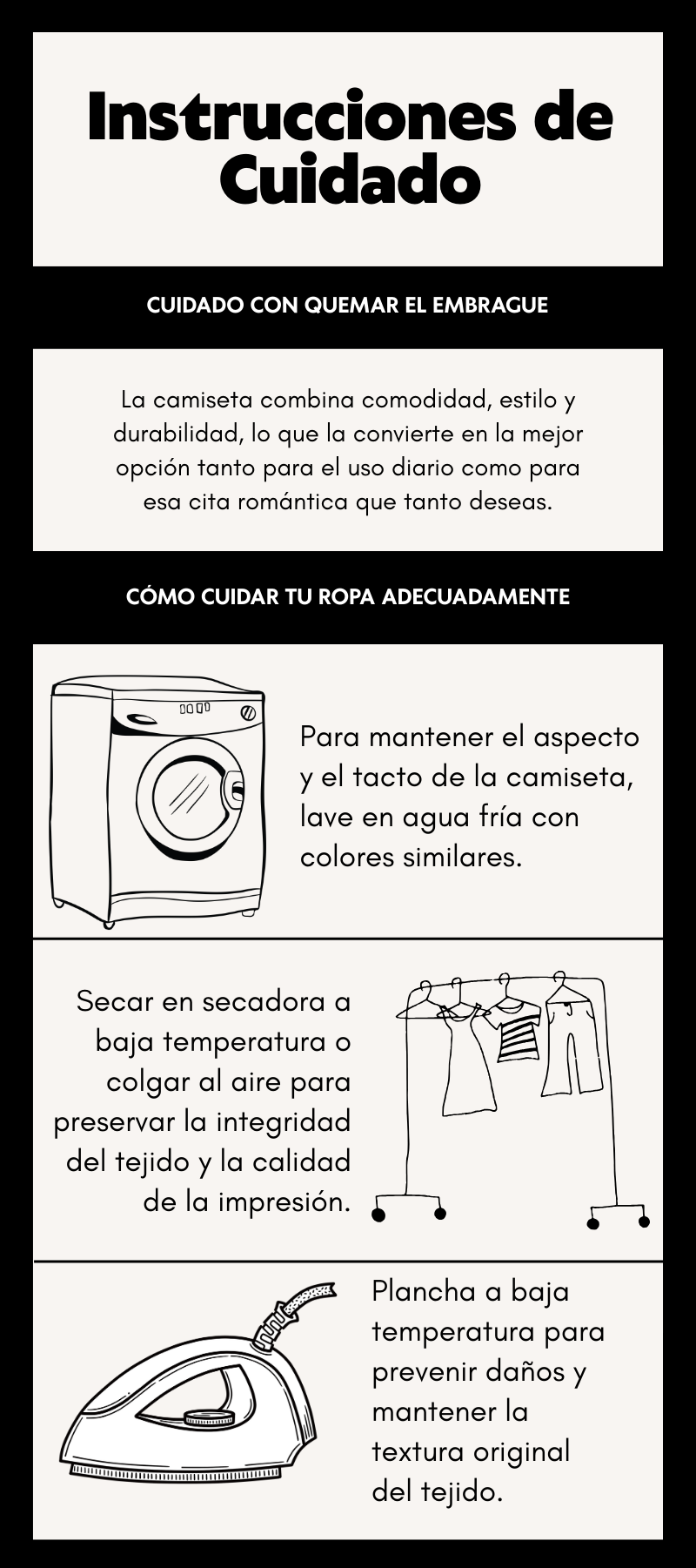Lava en frío, seca a baja temperatura y evita planchar directamente sobre la impresión.